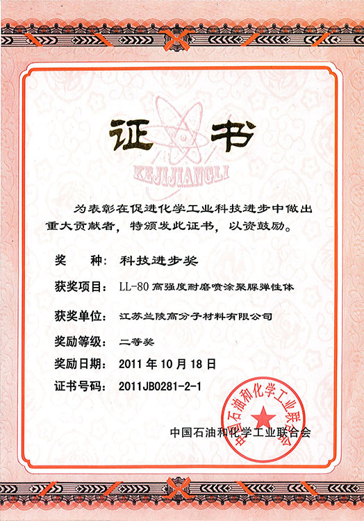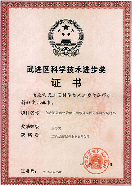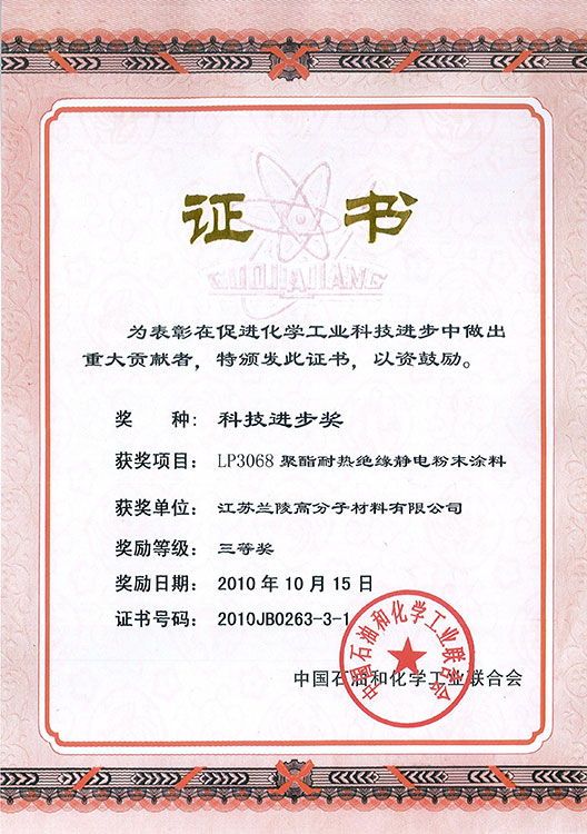 LL-80中石化科技進步二等獎 粉末科技進步獎證書 低表面處理鋼管用紫外